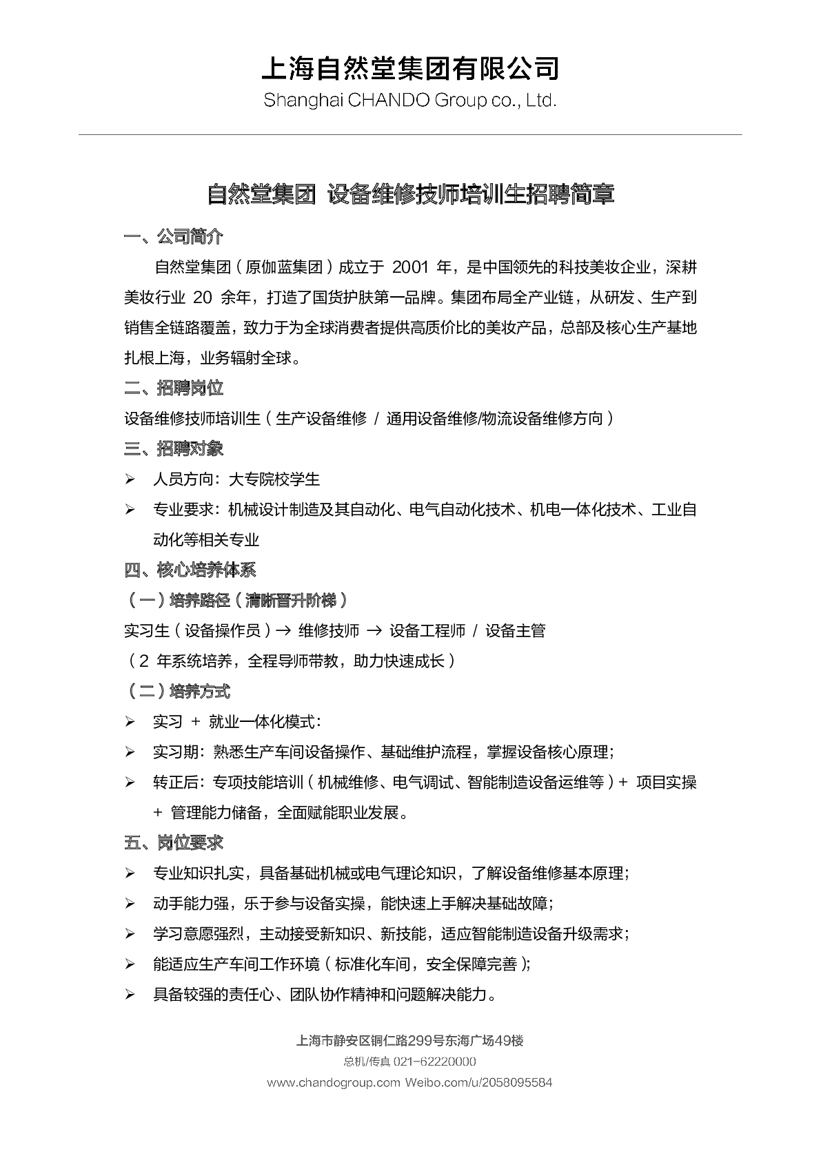 20260005上海自然堂集团有限公司招聘信息