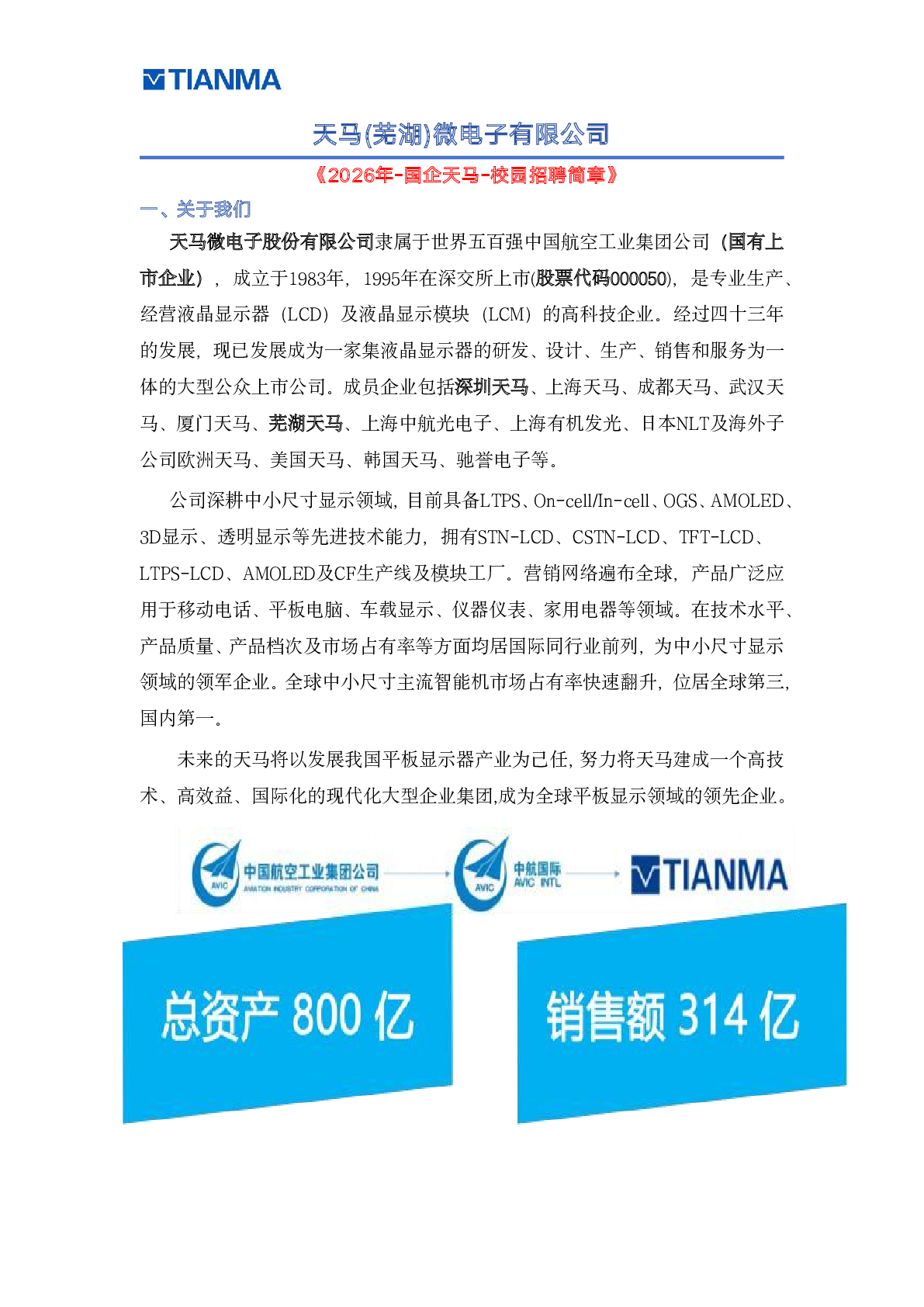 20260015天马(芜湖)微电子有限公司招聘信息