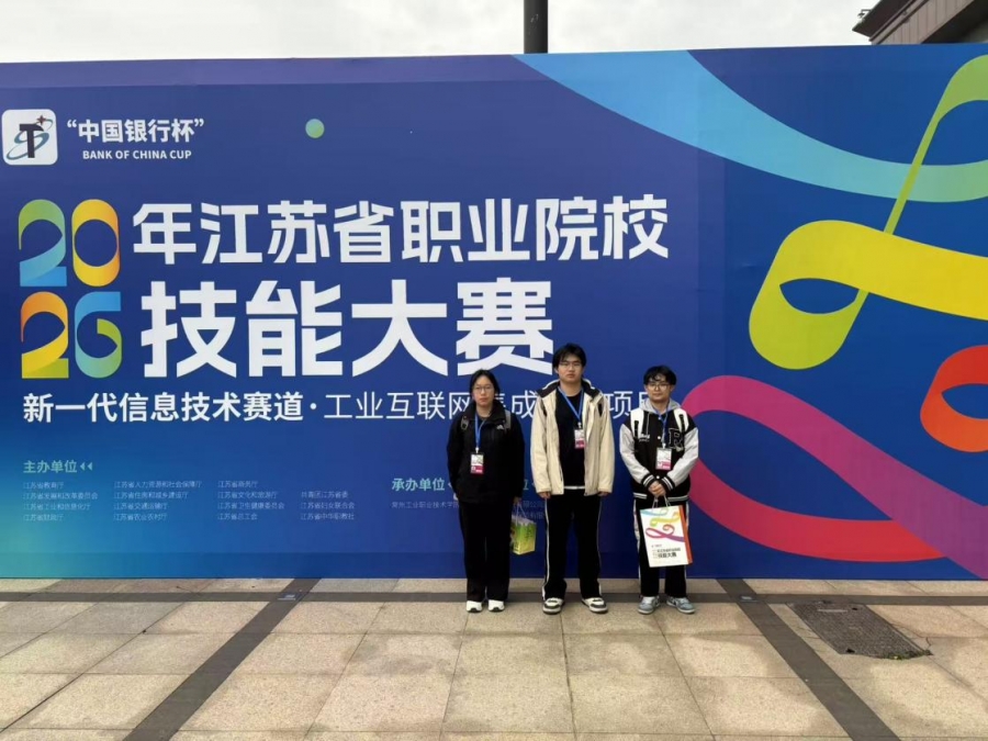 4月10日至12日,2026年江苏省职业院校技能大赛电子与信息赛道二“工业互联网集成应用”赛项在常州工业职业技术学院举行。来自全省25支队伍的75名学生同台竞技、切磋技艺。经过激烈角逐,我校智造学院由朱梓清、杨淼老师指导的学生刘啸、沈皓、张国杰组成的参赛队凭借扎实的专业能力与团队协作,荣获省级三等奖。