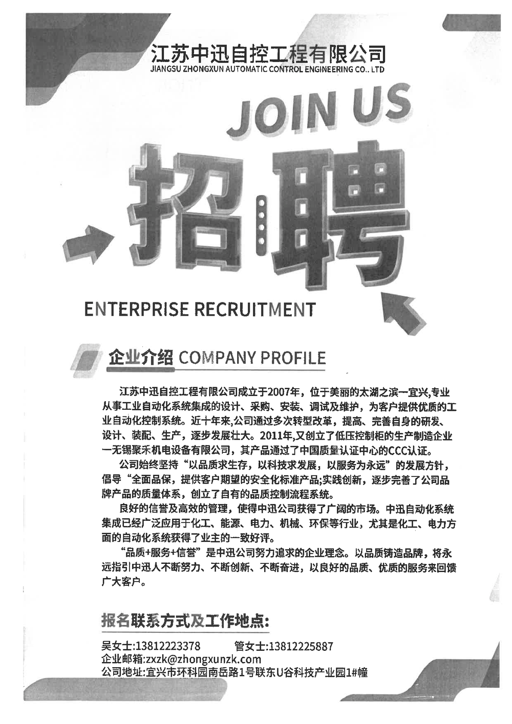20260030江苏中迅自控工程有限公司招聘信息